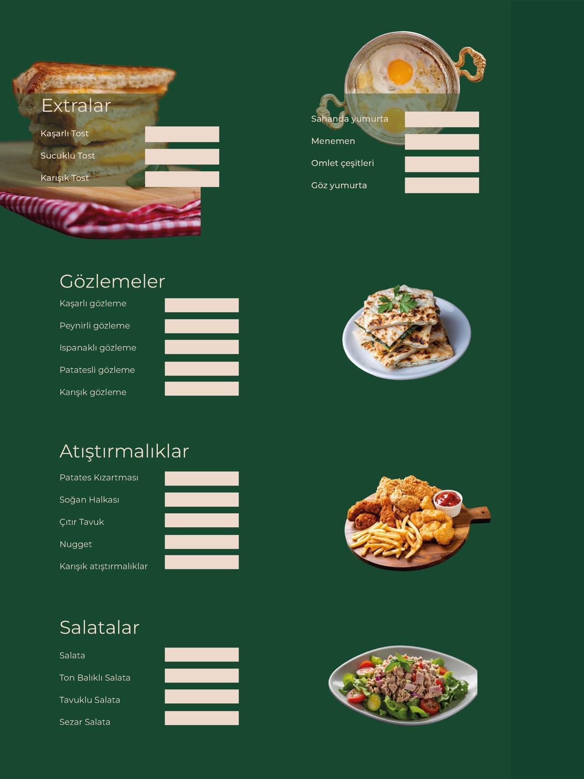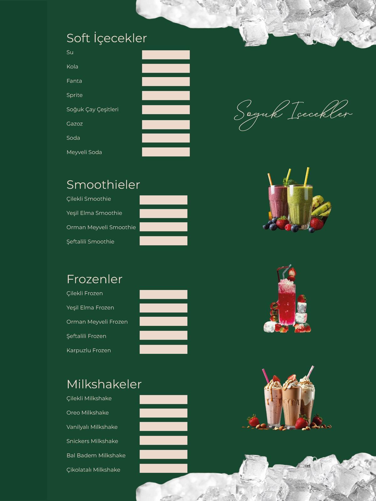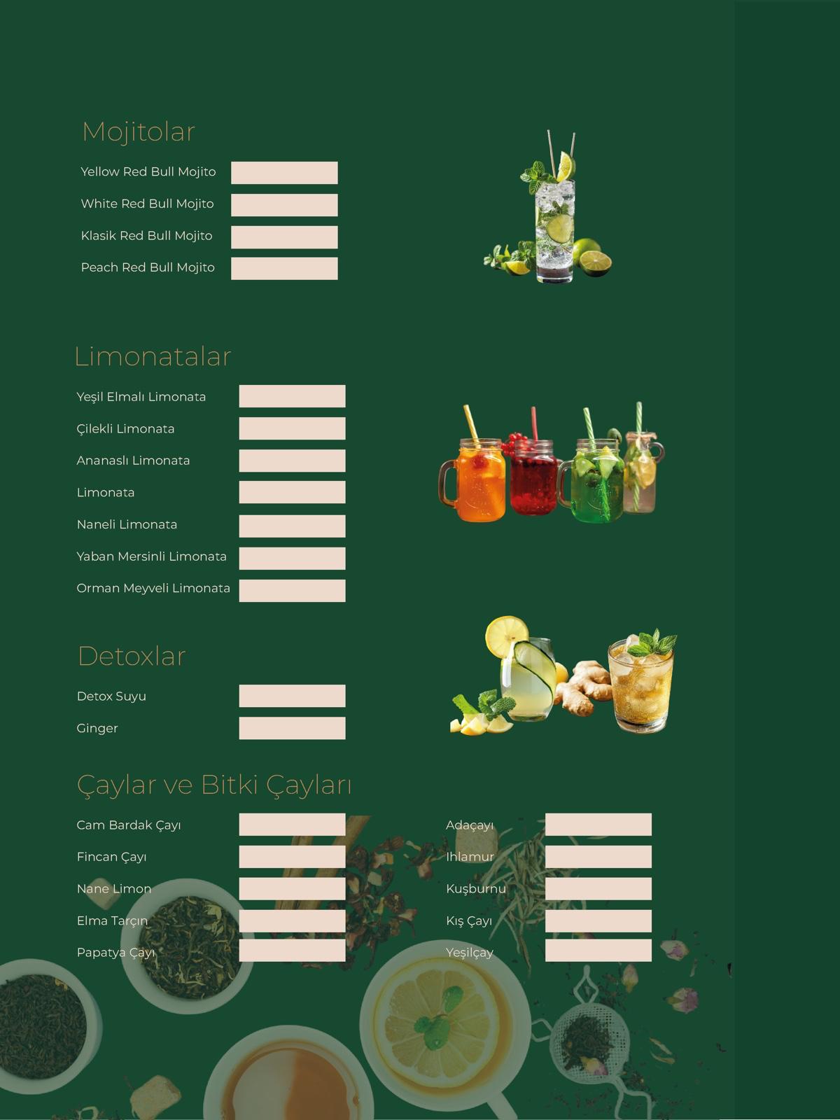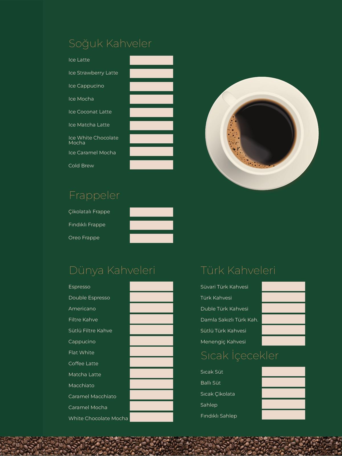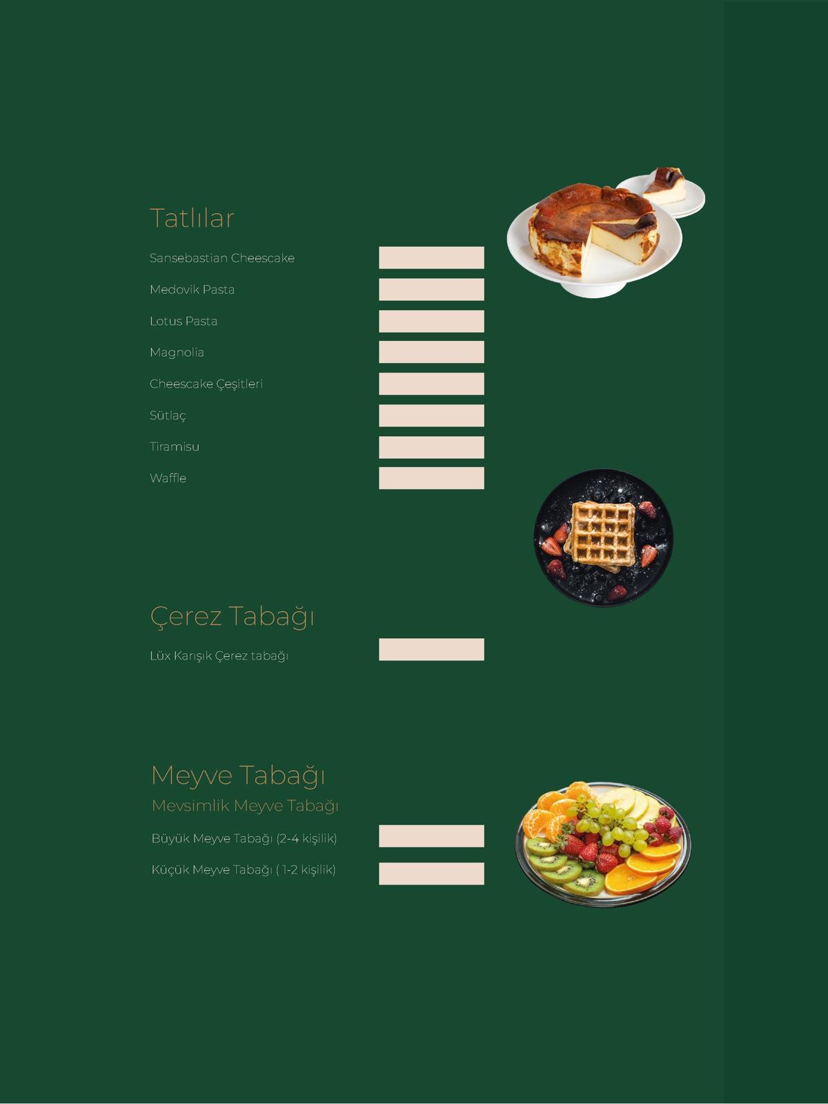 Antalya’da manzaralı kafe ve bistro deneyimini yansıtan menümüz;